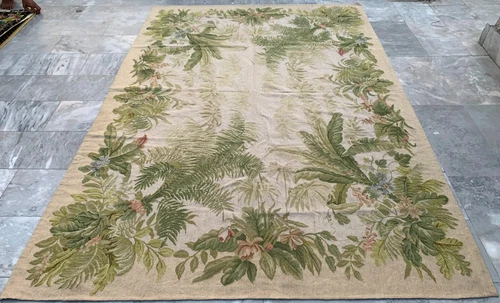 Vintage Handmade Aubusson Rug French Style Chain Stitch Needlepoint Rug 6×9 ft